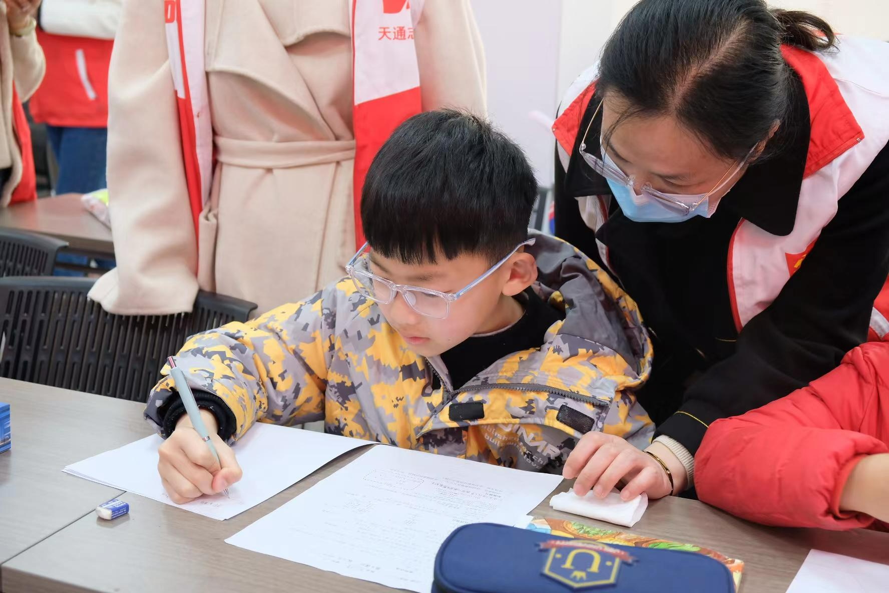 陽春三月,春風(fēng)暖心,上午8點,天通黨群服務(wù)中心培訓(xùn)室成了孩子們溫馨的學(xué)習(xí)場所,青年志愿者們正在輔導(dǎo)孩子們做作業(yè)。只見孩子們圍坐一起,低著頭認(rèn)真寫作業(yè)。遇到難題時,志愿者便耐心地與孩子們共同探討,幫助他們找到解題思路,培訓(xùn)室中時不時傳來志愿者們與孩子們的低語討論聲。